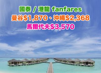 【國泰 / 港龍 fanfares】香港來回各地連稅:曼谷$1,870、沖繩$2,368、馬爾代夫$3,570!