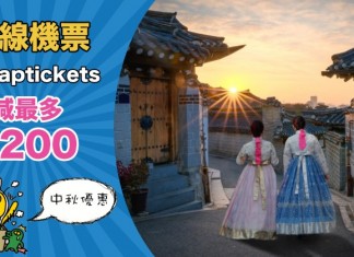 中秋有禮!全線機票都有得減!於 CheapTickets.hk 使用指定優惠代碼訂機票:亞洲航點減$100、亞洲以外航點減$200!優惠不限出發日期,旺季出發都有得減!如果再配合埋各航空公司嘅優惠,票價就可以抵上抵!優惠做到9月25日就完㗎喇!