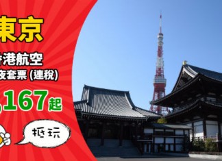 明年6月底前出發,港航.香港來回東京機票+酒店 (以最平住宿為例) 連稅:4日3夜$2,167起、5日4夜$2,207起、6日5夜$2,312起!