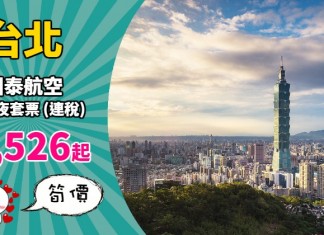 【靚價遊台】國泰筍玩套票!台北「機票+酒店」連稅:3日2夜$1,526起、5日4夜$1,660起!2019年3月底前出發 – 國泰航空 (優惠至2019年3月31日)