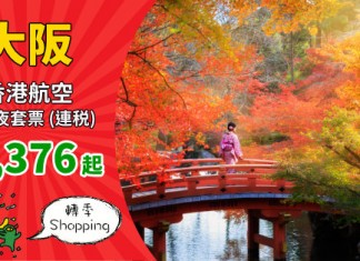 【大阪套票】有埋紅葉季!大阪「機票+酒店」連稅:4日3夜$2,376起、5日4夜$2,472起!包20kg行李 – 香港航空