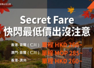 香港飛首爾單程$260起 (來回連稅$980起)、濟州$260起 (來回連稅$943起)