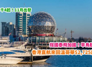 搭國泰飛加國!早鳥直航靚價!香港來回溫哥華$2,725起!連稅3千4起!11月出發 – 國泰航空 (優惠至4月30日)
