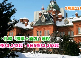 平遊北海道!港航.札幌「機票+酒店」連稅:5日4夜$3,242起、6日5夜$3,358起!9月至12月出發 – 香港航空 (優惠至4月30日)