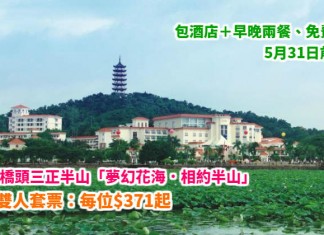 近近哋去東莞 hea 返2日啦!中旅社推出限時網購優惠,東莞橋頭三正半山「夢幻花海.相約半山」2日1夜雙人套票:每位$371起! 套票包1晚「東莞 (橋頭) 三正半山酒店」住宿+自助早、晚餐,更可免費遊覽蓮湖、攀游蓮湖公園松山寶塔!5月底前出發都有優惠價! 橋頭係荷花名鎮,每年初夏都有荷花綻放!酒店附近仲有蓮湖公園、賞荷長廊、松山寶塔等,環境古雅優美!快啲 Tag 埋你嘅旅伴,一齊去放鬆吓啦! 預訂資訊: 入住日期:即日-2018年5月31日 預訂日期:即日起 (售完即止) 預訂網址:http://www.ctshk.com