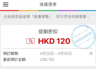 又有大家至愛嘅酒店優惠券啦!Agoda 推出全新優惠券,訂滿$1,200即減$120!優惠用到盡即係額外有多9折! 獲取優惠券方法: 方法1:以手機進入指定連結下載 Agoda App,成功下載後,點選 App 左上角選單內的「推廣優惠 / Promotion」,即可見到減$120優惠券。 方法2:以電腦進入指定連結,用手機 scan 頁面中嘅 QR code,即可下載 Agoda App,成功下載後,點選 App 左上角選單內的「推廣優惠 / Promotion」,即可見到減$120優惠券。 指定下載連結:http://bit.ly/2HewEIH 必需經以上連結下載 App 先至會有優惠券,用其他方法或連結下載係唔會有㗎! 呢個優惠需於2018年4月26日前完成預訂,過咗呢一日之後,優惠代碼會自動失效。另外,優惠代碼不適用於部分連鎖酒店。 注意: 優惠適用於香港、台灣用戶下載的 Agoda App。 有部分手機未必能支援此優惠。 ...