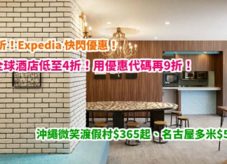折上折!Expedia 快閃優惠!全球酒店低至4折!用優惠代碼再9折!沖繩微笑渡假村$365起、名古屋多米$595起 – Expedia (優惠至3月22日)