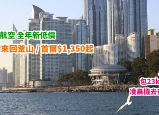 大韓全年新低價!香港來回釜山 / 首爾$1,350起!連稅千7起!凌晨機去夜機返!包23kg行李 – 大韓航空 (優惠至3月31日)