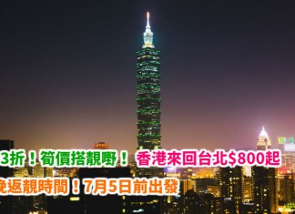 香港來回台北 / 台中 / 高雄 / 台南機票 (包30kg行李寄艙、飛機餐)+酒店,連稅計:3日2夜$1,463起、4日3夜$1,521起、5日4夜$1,584起!