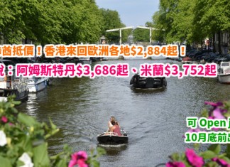 阿聯酋歐洲抵價!香港來回歐洲$2,884起!連稅:阿姆斯特丹$3,686起、米蘭$3,752起!可 Open jaw!10月底前出發 – 阿聯酋航空 (優惠至3月16日)