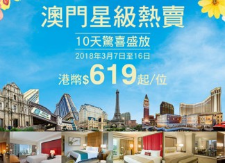正呀喂!又有爆抵嘅澳門套票,啱晒去豪住酒店歎返2日!中旅社推出「澳門星級熱賣」!澳門金沙度假區酒店住宿+TurboJET 香港來回澳門船飛,每位$619起!2人同行即合共$1,238起!6月底前出發都有平。