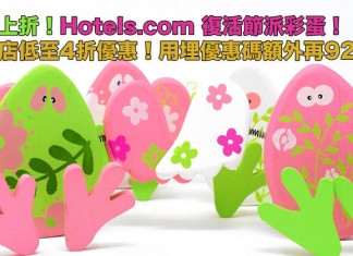 折上折!Hotels.com 復活節派彩蛋!酒店低至4折!用埋優惠碼額外再92折!香港、台灣粉絲齊享優惠 – Hotels.com (優惠至3月30日)