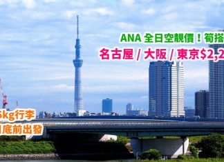 ANA靚價!筍搭靚嘢!香港來回名古屋 / 大阪 / 東京$2,221起!包46kg行李!10月底前出發 – ANA 全日空 (優惠至3月31日)