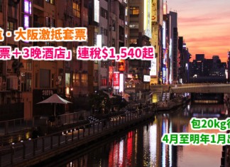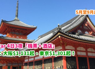 爆抵日本套票!遊日必搶!4日3夜「機票+酒店」連稅:大阪$1,131起、東京$1,301起!5月至9月出發 – Jetstar (優惠至3月8日)