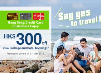 恒生信用卡用戶訂滿$3,000減$300優惠代碼:HS300P18