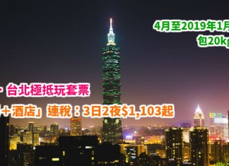 抵到狂奔!港航.台北「機票+酒店」連稅:3日2夜$1,103起、5日4夜$1,256起!包20kg行李!4月至2019年1月出發 – 香港航空 (優惠至3月16日)