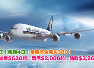 勁正!限時4日!坐新航全新A380!香港來回新加坡$630起、悉尼$2,000起、倫敦$3,260起 – 新加坡航空 (優惠至3月2日)