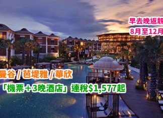 泰航有隻早鳥曼谷機票,官網賣緊連稅$1,516起,夠晒抵玩!但如果上 Expedia「機票+酒店」一齊訂」,加$61就可以有埋3晚住宿!8月至12月出發都有平,超筍! 香港來回曼谷「機票+酒店」,2人同行每位連稅計:4日3夜$1,577起、5日4夜$1,598起!住芭堤雅 / 華欣嘅酒店、Resort都得,最耐可以玩到8日7夜! 航班選擇都幾多,可以揀早去晚返添 (視乎供應而定)!價格包咗30kg行李寄艙、飛機餐,並以入住最平住宿為例。如果想住好啲,4日3夜「機票+4星酒店」連稅都只係$1,778起!正喎! 曼谷 / 芭堤雅 / 華欣「泰航機票+4/5星酒店」4日3夜套票精選: (以9月4日去、9月7日返為例) 機票+普拉索拉差達 12 號酒店 ★★★★|連稅$1,945起 酒店房間夠大,有泳池、健身室等設施,附近有便利店、酒吧和食店,非常方便。距離地鐵「Huai Khwang 站」約8分鐘步程。 機票+修爾住宿酒店 – 普拉斯蘇坤蔚路 2 號貝斯特韋斯特酒店 (新酒店) ★★★★|連稅$2,171起 2017年10月開業,Best Western 集團旗下...
