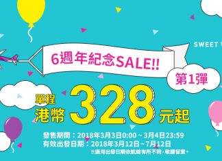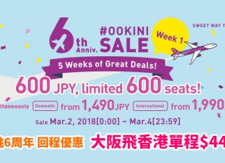 樂桃6周年優惠!香港飛大阪單程$328起!留意櫻花期!2018年7月前出發 – 樂桃航空 (優惠至3月4日)