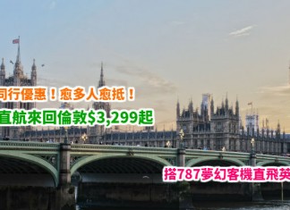 香港直航來回倫敦,4人同行:每位$3,299起 (連稅$4,967起)、2人同行:每位$3,499起 (連稅$5,167起)!而1人出發就$3,699起 (連稅$5,367起)!