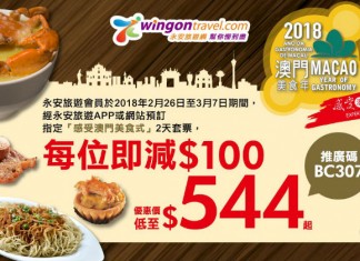 永安旅遊會喺聽日 (2月28日) 1:00pm至4:00pm推出閃劈優惠,經永安旅遊手機版網站 / App 預訂金光飛航香港來回澳門船飛 (星期一至五班次出發),輸入推廣碼「GF771」,全單滿$500即減$102!即係購買雙人來回船飛的話,每位只需$199!再加送百老匯「奇幻秀」門劵 (價值$150),仲有船上免費任用 WiFi!抵到你唔信!