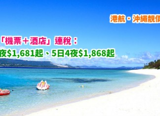 使用折扣後,2人同行預訂港航香港來回沖繩機票 (包20kg行李寄艙、飛機餐)+酒店,每位連稅計:3日2夜$1,681起、4日3夜$1,775起、5日4夜$1,868起!大家可自訂行程長短,最多可玩8日7夜!