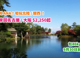 搭高質 ANA!筍玩北陸 / 關西!香港來回名古屋 / 大阪$2,250起!包46kg行李!9月30日前出發 – ANA 全日空 (優惠至2月28日)