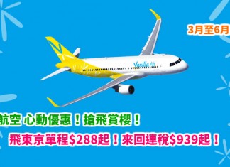 香草平飛!搶飛賞櫻!香港飛東京單程$288起!來回連稅$939起!3月至6月出發 – 香草航空 (優惠至2月13日)