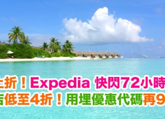 折上折!Expedia 快閃72小時!酒店低至4折起!用埋優惠代碼額外再9折 – Expedia (優惠至1月25日)