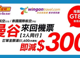 打算飛泰國嘅粉絲留意啦!永安旅遊推出新一期「爆賞星期三」,聽日 (1月24日) 下午1點至4點預訂曼谷機票,輸入推廣碼「GT813」可減$300!正!