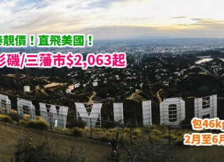 直飛美國!國泰靚價!香港來回洛杉磯 / 三藩市$2,063起!連稅2千8起!包46kg行李!2月至6月出發 – 國泰航空 (優惠至1月24日)