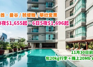 玩多幾日都得,連稅計:5日4夜$1,676起、6日5夜$1,696起,最耐可以玩足1個月 (31日30夜)!套票包括香港來回曼谷機票、飛機餐、20kg行李寄艙、稅項、酒店住宿 (以上價格係入住最平住宿為例)!