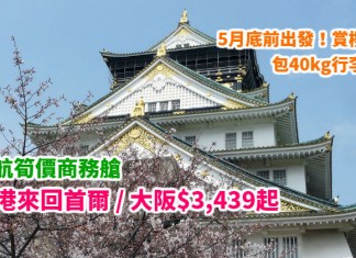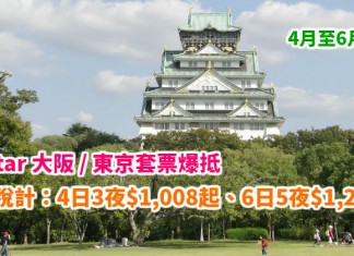 香港來回大阪機票+酒店套票,連稅計:4日3夜$1,008起、5日4夜$1,104起、6日5夜$1,200起!