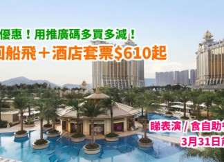 澳門激減推廣碼!買得越多減得越多!酒店+船飛套票$610起!表演門票 / 自助餐同樣有得減!淨買船飛$248起!3月31日前出發 – 中旅社