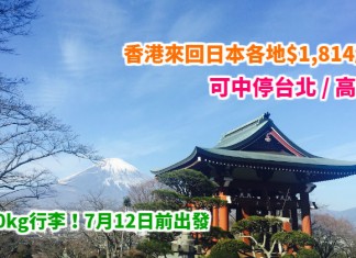 一票玩兩地!香港來回日本各地$1,814起!可中停台北 / 高雄!包30kg行李!7月12日前出發 – 中華航空 (優惠至7月12日)