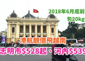 港航靚價!抵飛越南歎法菜!香港來回胡志明市$528起、河內$539起!包20kg行李!2018年6月底前出發 – 香港航空
