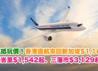 抵玩價!香港直航來回新加坡$1,168起、三藩市$3,129起;轉飛峇里$1,542起!2018年2月9日前出發 – 新加坡航空 (優惠至12月13日)