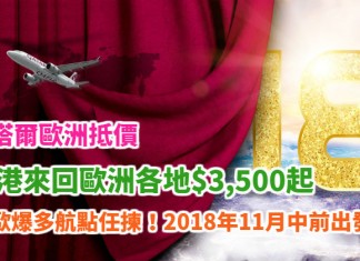 卡塔爾歐洲抵價!香港來回歐洲各地$3,500起!全歐爆多航點任揀!包30kg行李!2018年11月中前出發 – 卡塔爾航空 (優惠至2018年1月5日)
