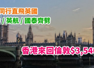 香港直航來回倫敦$4,099起 (連稅$5,464起)、使用DBS優惠代碼後$4,159起 (連稅$5,225起)!