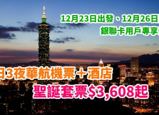 台北過聖誕!一日假都唔駛攞!華航機票+酒店4日3夜套票$3,608起!銀聯專享優惠!12月23日出發、12月26日回程!早機去晚機返 – 中旅社