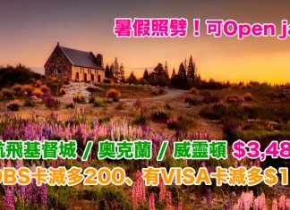 暑假照劈!澳航飛新西蘭激抵!香港來回基督城 / 奧克蘭 / 威靈頓$3,482起!有 DBS 卡減多200、有 VISA 卡減多$100!可Open jaw!2018年9月前出發 –...