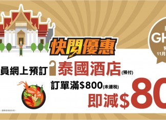 憑推廣碼「GH023」預訂全線泰國酒店滿$800 (未連稅) 即減$80!優惠用到盡即係相當於有多9折。