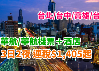 華航 / 華信抵價台灣套票!台北 / 台中 / 高雄 / 台南「機票+酒店」連稅計:3日2夜$1,405起、5日4夜$1,525起!有滙豐卡訂滿$3,000再減$600 – 中華航空...