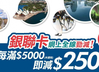 銀聯卡優惠!永安網上預訂全線機票、酒店、套票等旅遊產品:每滿$5,000即減$250!最多勁減$2,000 – 永安旅遊 (優惠至2018年2月28日)