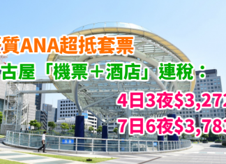 優質ANA超抵套票!名古屋「機票+酒店」連稅:4日3夜$3,272起、7日6夜套票$3,783起!有滙豐卡訂滿$3,000再減$600!2018年3月底前出發 – ANA全日空 (優惠至12月31日)
