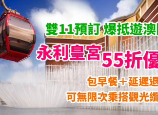 雙11狂減!限時7日!澳門永利皇宮55折!酒店+早餐+延遲退房+無限次乘搭觀光纜車!2018年3月底前入住 – 永利澳門 (優惠至11月12日)