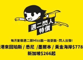 正呀喂!連稅千七蚊飛澳洲!酷航 (Scoot) 會喺聽朝 (11月7日) 10am起推出激抵優惠! 香港來回新加坡只需$266 (連稅$718起)! 經新加坡來回澳洲4大城市亦劈至$778起!連稅計:珀斯$1,724起、黃金海岸$1,859起、悉尼$1,865起、墨爾本$1,896起 以上價錢未包寄艙行李,但加埋行李費用大約都係3千蚊樓下!都係抵!酷航新加坡來往澳洲仲可坐787夢幻客機! 出發日期由即日起至2018年3月24日 (旺季除外)。 以上價錢未包寄艙行李,但加埋行李費用大約都係3千蚊樓下!都係抵! 寄艙行李收費: 澳洲:20kg FlyBag 每程$435、25kg FlyBag 每程$555、35kg FlyBag 每程$685 新加坡:20kg FlyBag 每程$170、25kg FlyBag 每程$230、30kg FlyBag 每程$290 預訂資訊: 旅行日期:即日-2018年3月24日 預訂日期:2017年11月7日10am-11月12日 預訂網址:http://www.flyscoot.com/zhtw/hk-take-off-tuesday