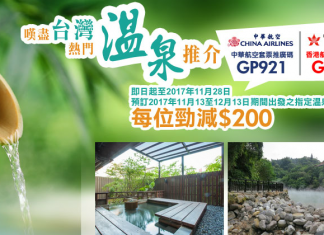 抵價台灣歎溫泉!用優惠碼訂「來回機票+台中 / 台北溫泉酒店」每位減$200!再送台灣悠遊卡!11月中至12月中出發 – 永安旅遊 (優惠至11月28日)