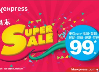 HK Express $99 Super Sale!福岡 / 芽莊 / 花蓮 / 峴港...