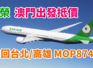 長榮爆抵!澳門來回台北 / 高雄MOP874起!包30kg行李!2018年3月28日前出發 – 長榮航空 (優惠至11月30日)